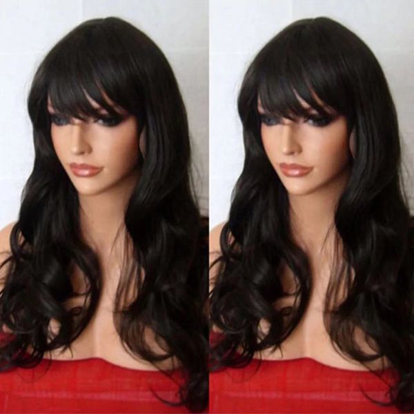 Long Straight Synthetic Hair Wig With Bangs Long Black Hair Wigs